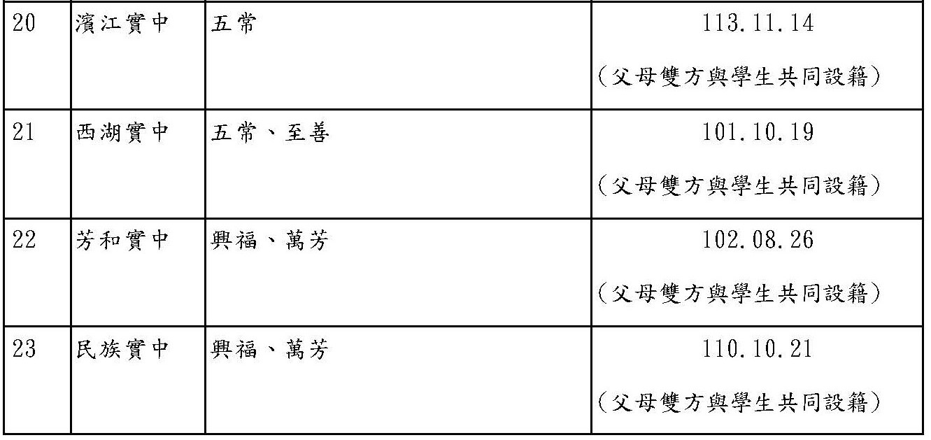 台北市112學年額滿學校暨學籍最後設籍日