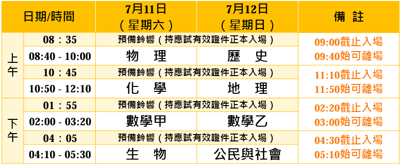 【115分科】115年分科測驗考試日程與節次 7月11日至12日考試